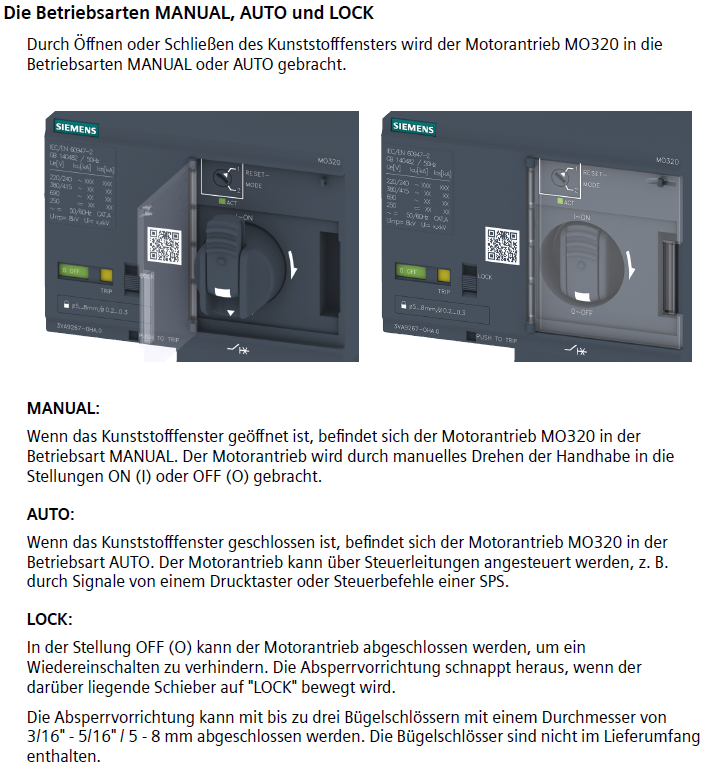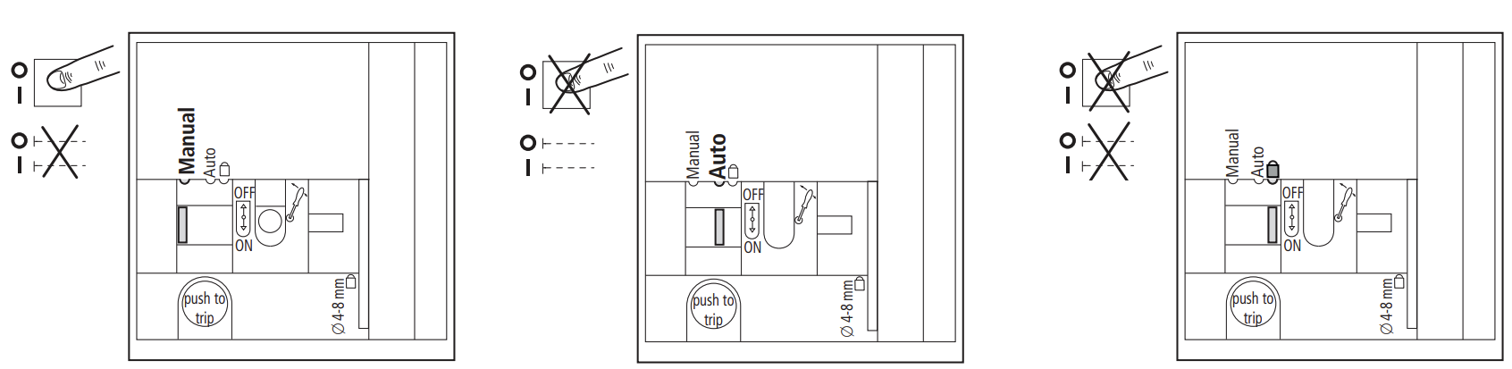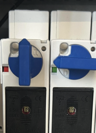 Schalte den Leistungsschalter auf Manuell-Betrieb