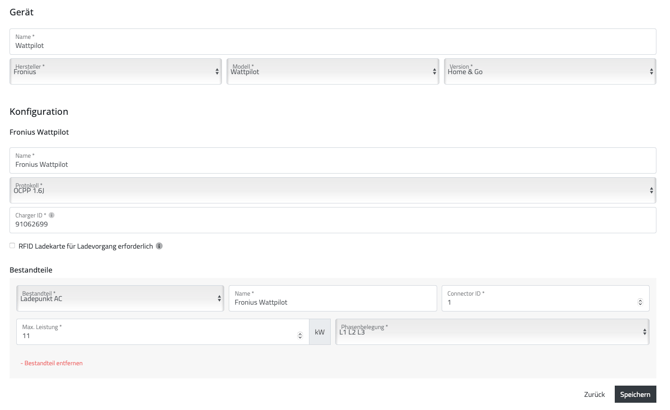 Als Charger ID ist die Seriennummer des Wattpilots einzutragen.