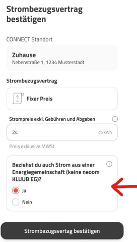 Bitte beachte, dass du nur als Standortbesitzer den Einspeisevertrag in der neoom App ändern kannst.