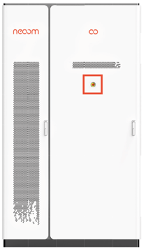 - Jeder neoom TERRA verfügt über einen Not-Halt Taster, welcher am Gehäuse befestigt ist und von außen betätigt werden kann.