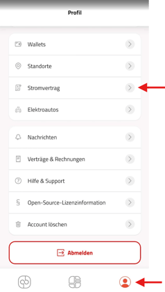 Klicke in der Profil Sektion der App (Icon unten rechts) auf "Stromvertrag".